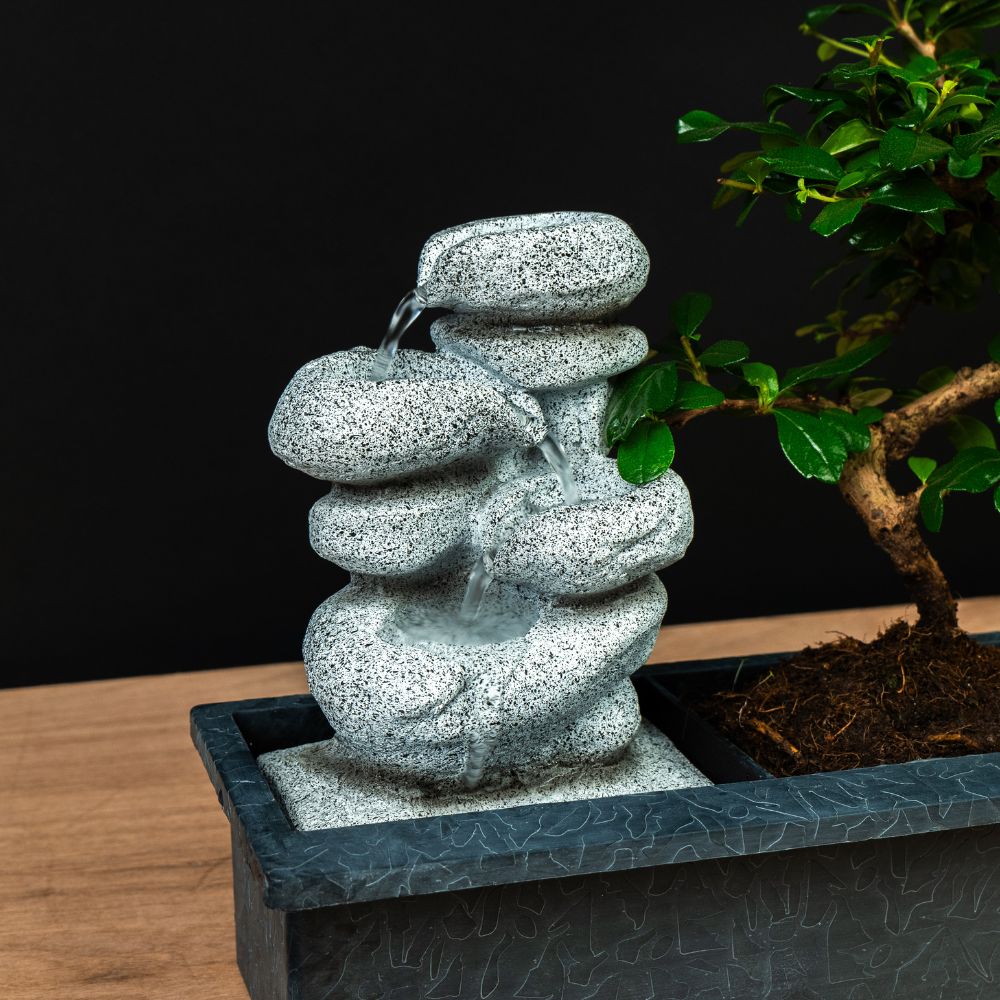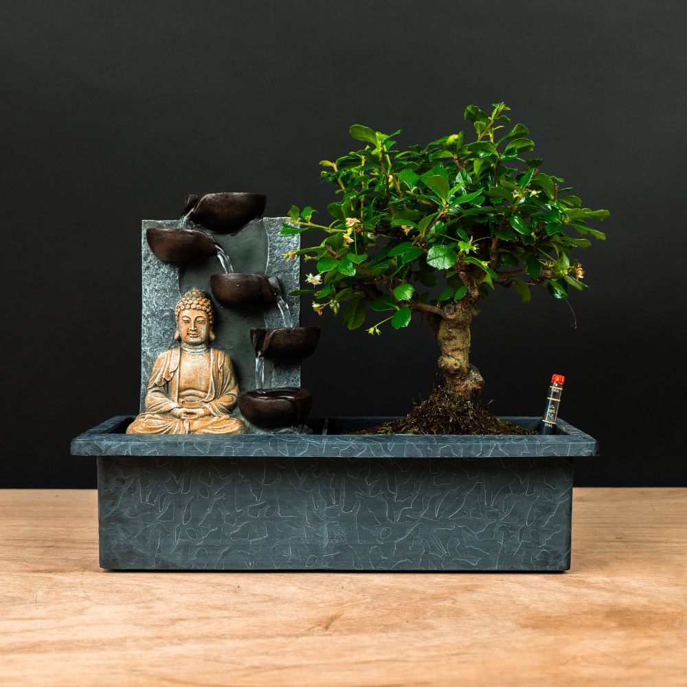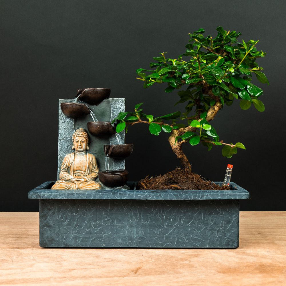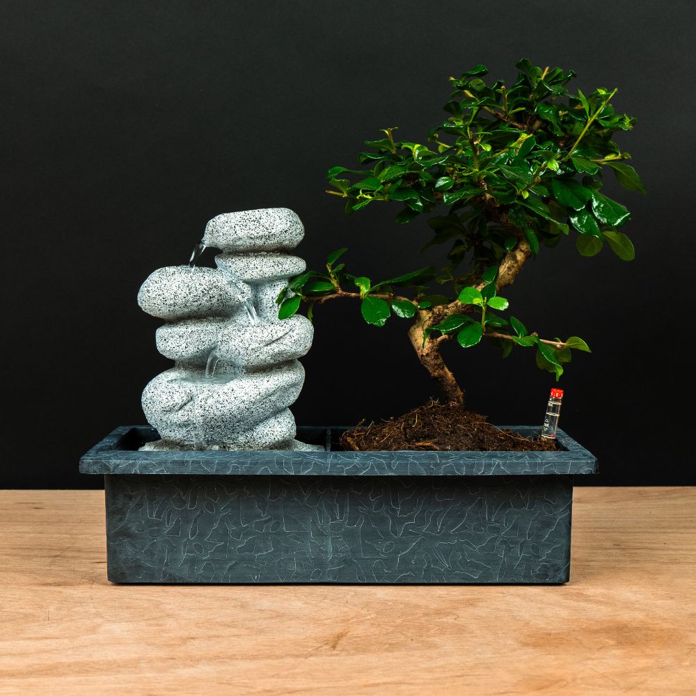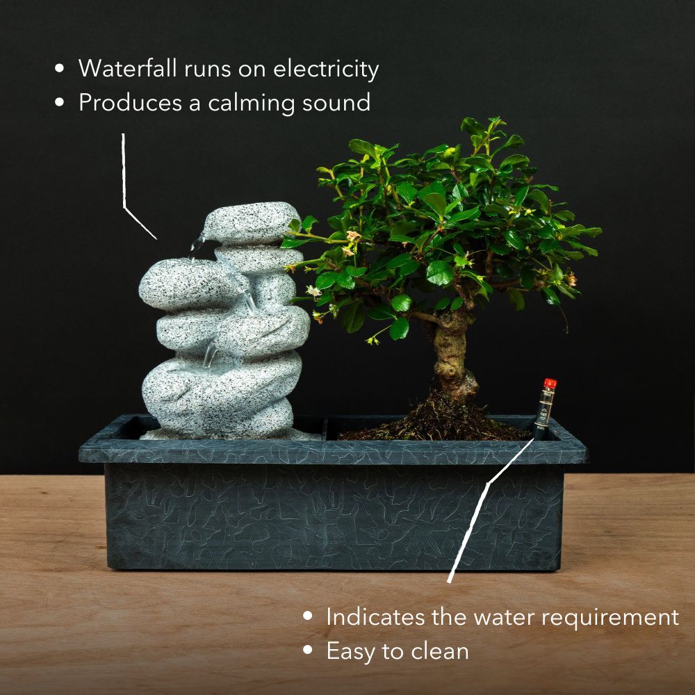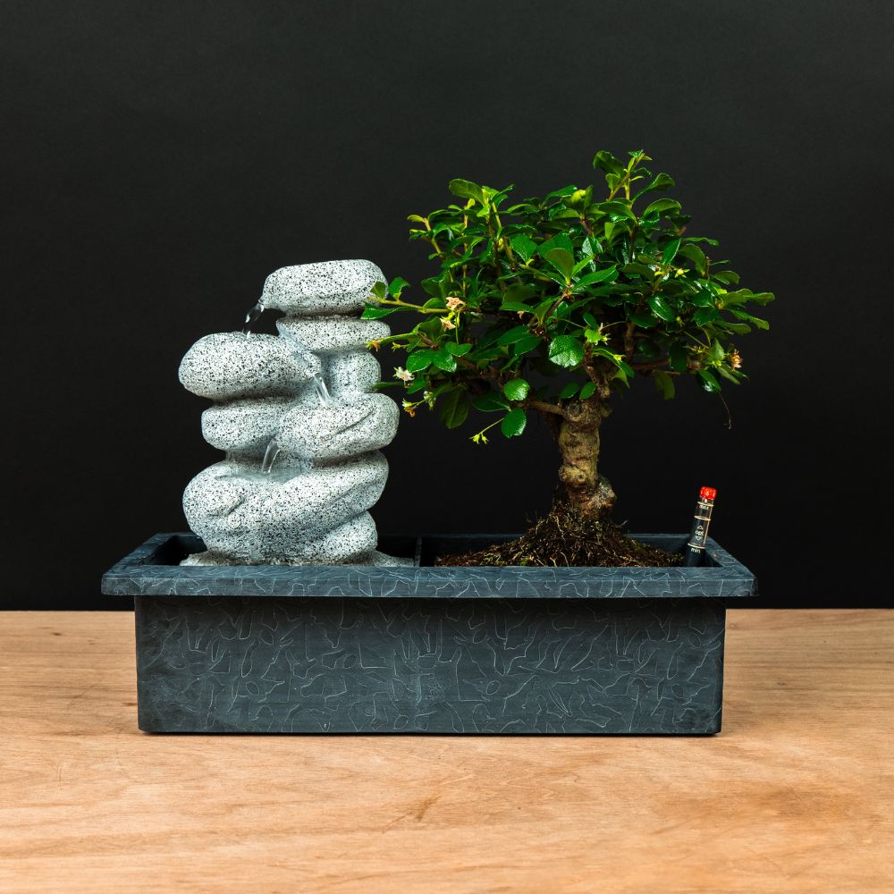 De bonsai zelf staat stevig bovenop het waterreservoir, waardoor de wortels precies de juiste hoeveelheid water kunnen opnemen. Dit slimme systeem maakt de verzorging van uw bonsai eenvoudig en stressvrij. Ideaal voor wie wil genieten van een gezonde, mooie bonsai zonder dagelijks te hoeven controleren!