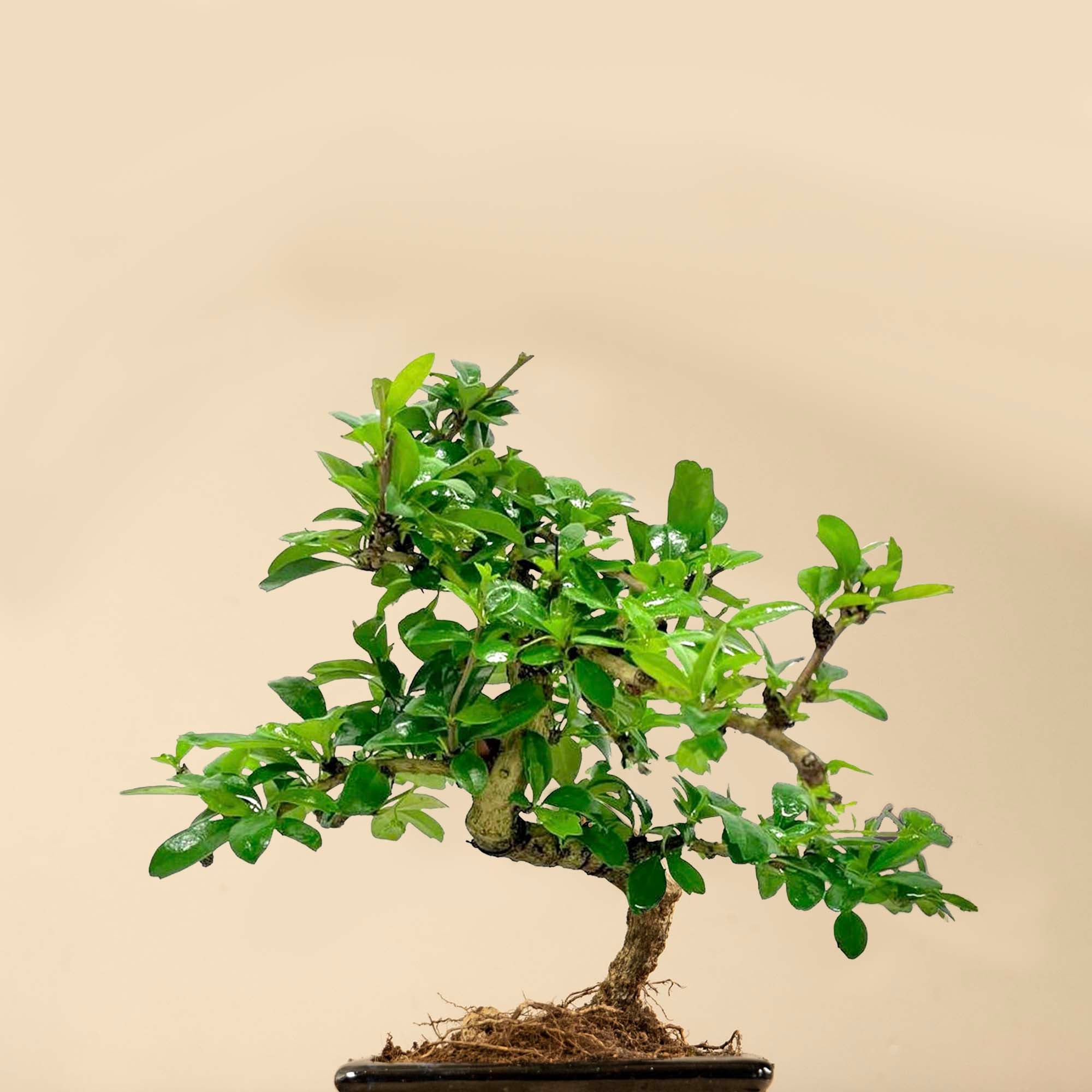 Il bonsai Carmona Chuu emana pura serenità con le sue foglie lucide, verde scuro e la sua delicata fioritura bianca che appare con discrezione durante tutto l’anno. Questo bonsai porta in casa una sensazione di calma e armonia naturale, come se un frammento della natura asiatica prendesse vita nel tuo soggiorno. Perfetto come opera d’arte vivente o come regalo speciale che lascia un’impressione duratura.